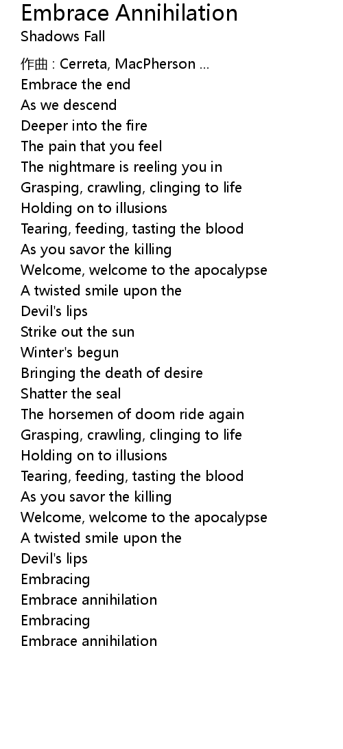 | Song | Embrace Annihilation |
