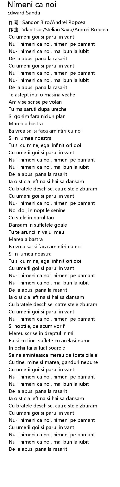 | [00:00.000] | 作词 : Sandor Biro/Andrei Ropcea |