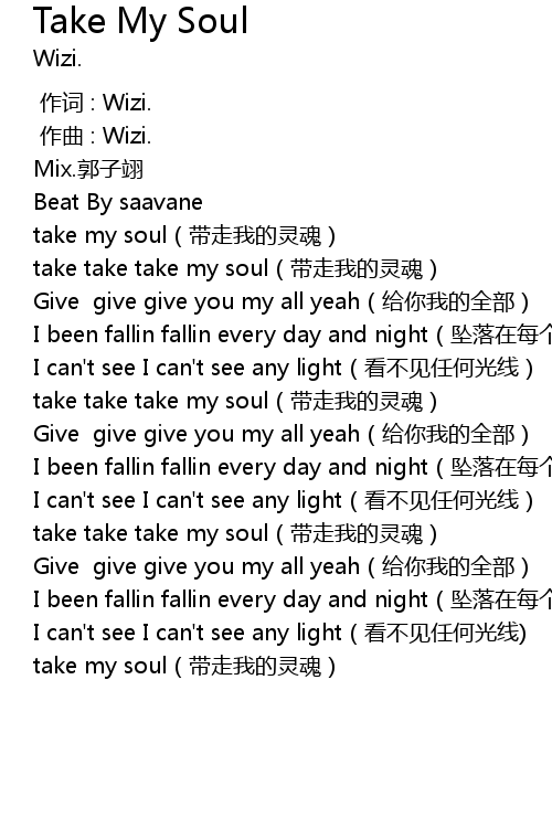 | [00:17.333] | take my soul dai zou wo de ling hun |
