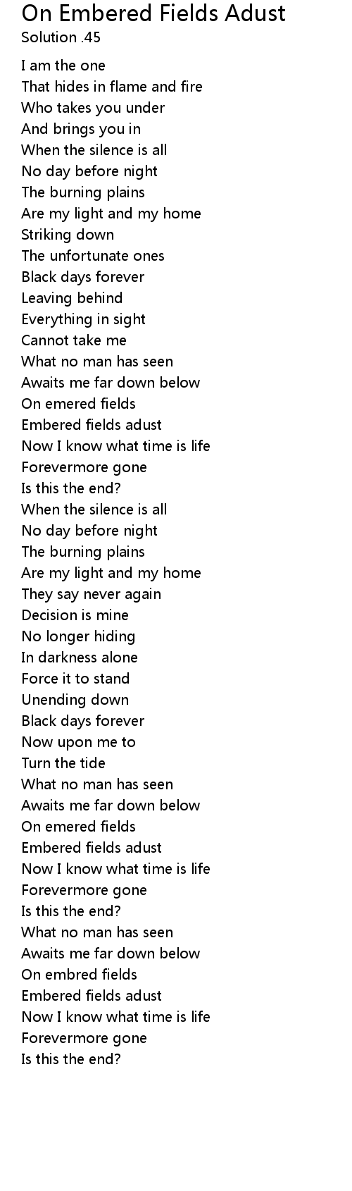 Embered fields adust |