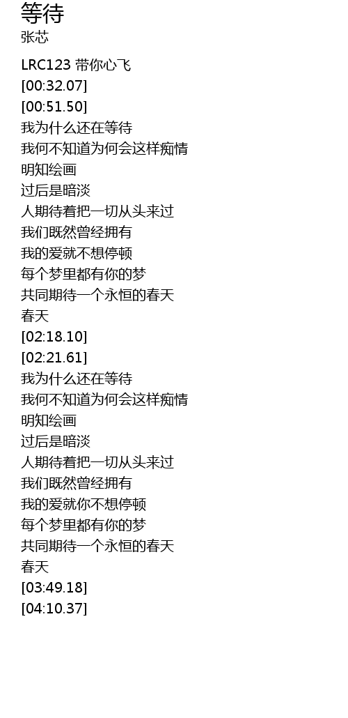 | [00:11.87] | LRC123 带你心飞 |