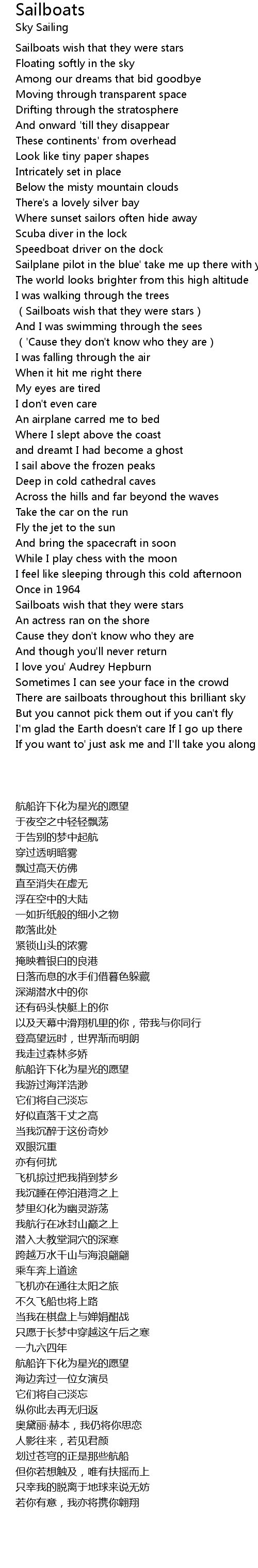 | [00:01.310] | Sailboats wish that they were stars |