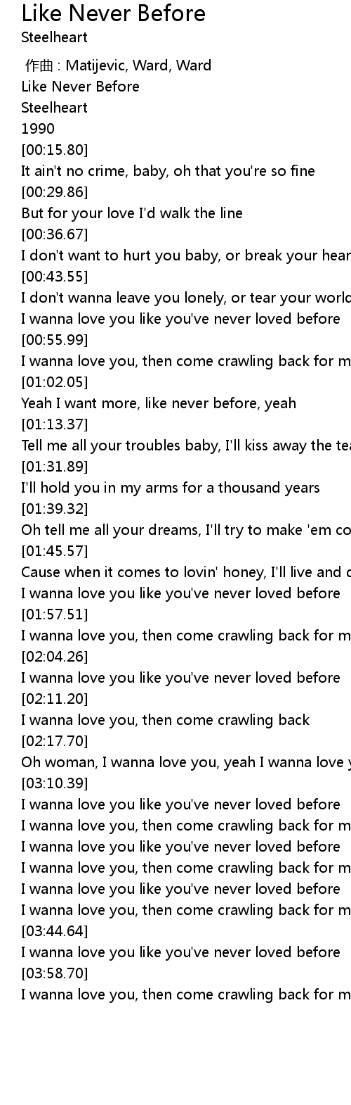 | [03:20.58] | I wanna love you like you've never loved before |