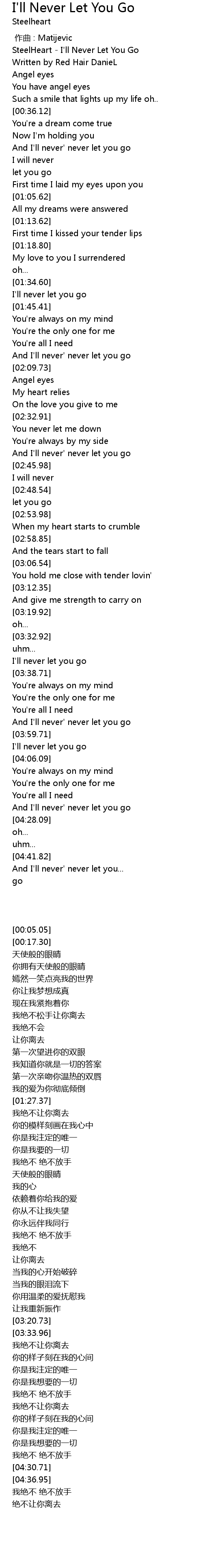 | [00:05.05] | SteelHeart I' ll Never Let You Go |
