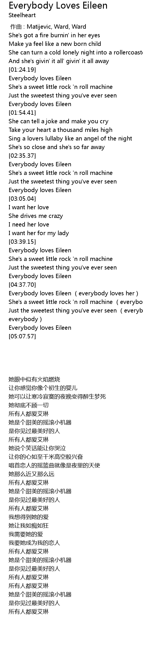 | [04:38.43] | Everybody loves Eileen (everybody loves her) |