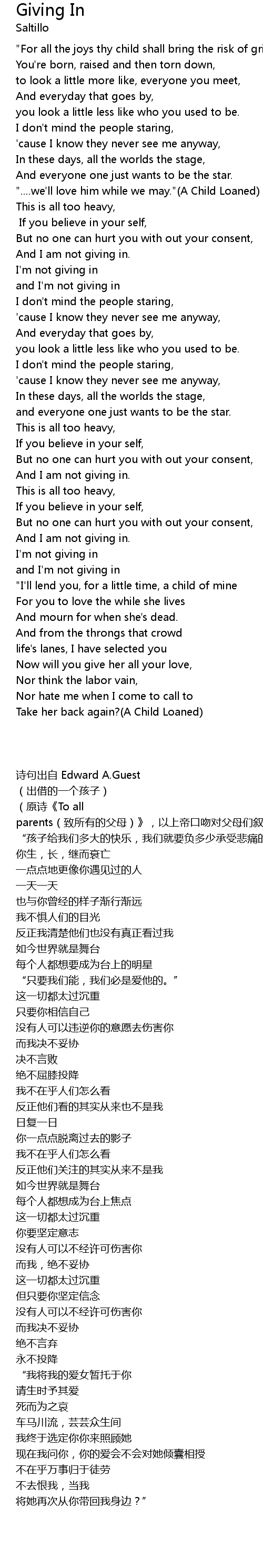 | [00:06] | "For all the joys thy child shall bring the risk of grief we'll run." |