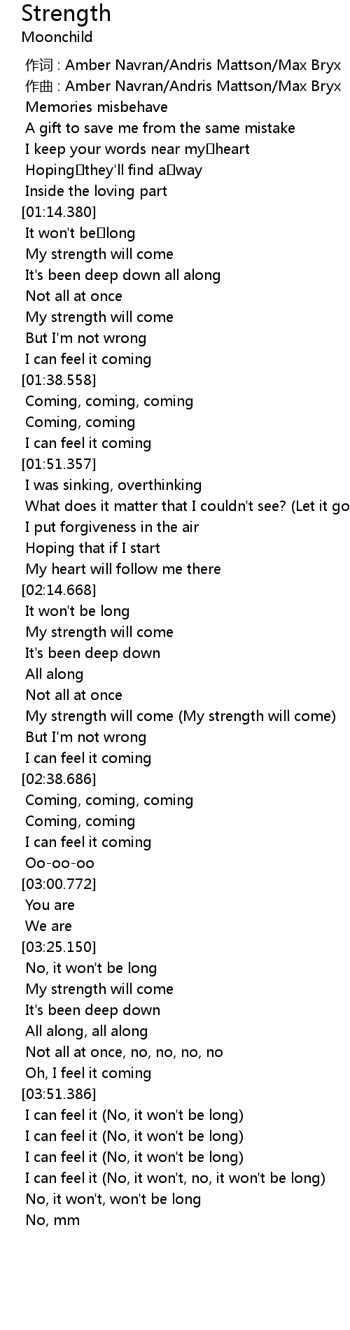 | [02:29.473] | My strength will come (My strength will come) |