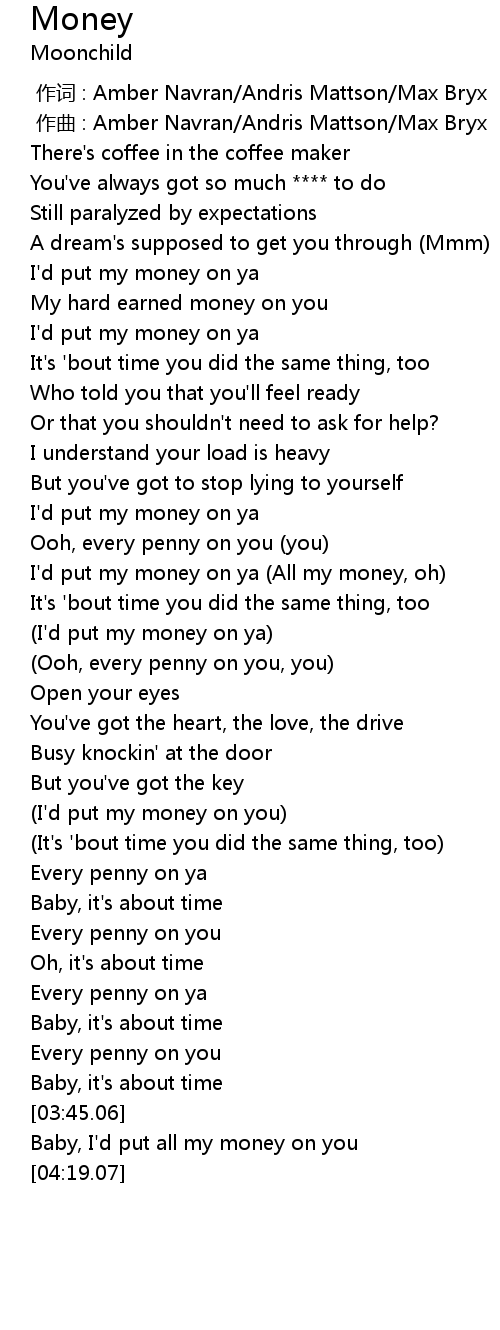 | [01:46.71] | I' d put my money on ya All my money, oh |