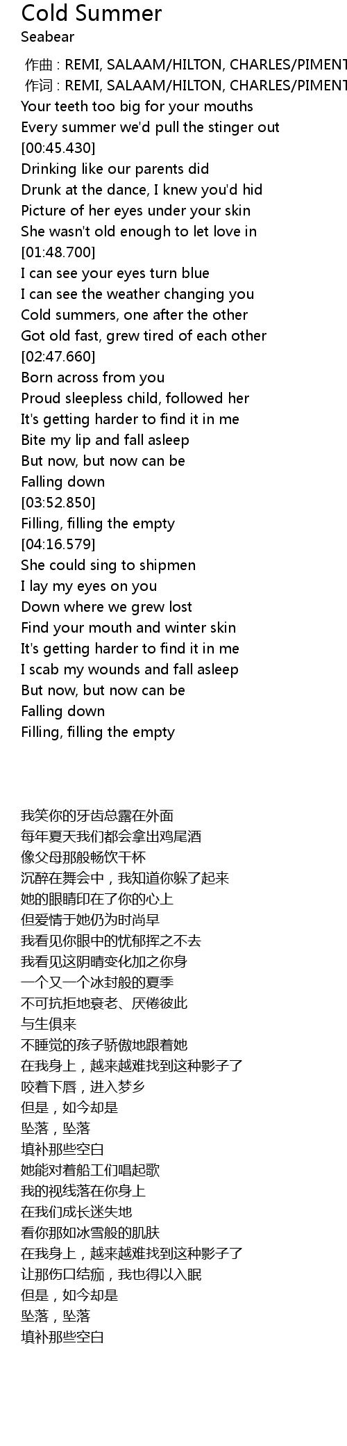 | [00:25.900] | Every summer we' d pull the stinger out |