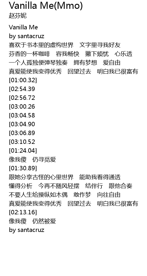 | [03:14.72][02:54.39][02:13.55][01:01.87] | man you zhuang zhi wo jian zhong ye hai pa |