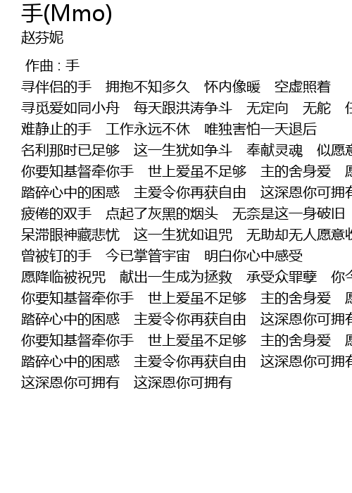 | [03:01.08] | 踏碎心中的困惑 主爱令你再获自由 这深恩你可拥有 |