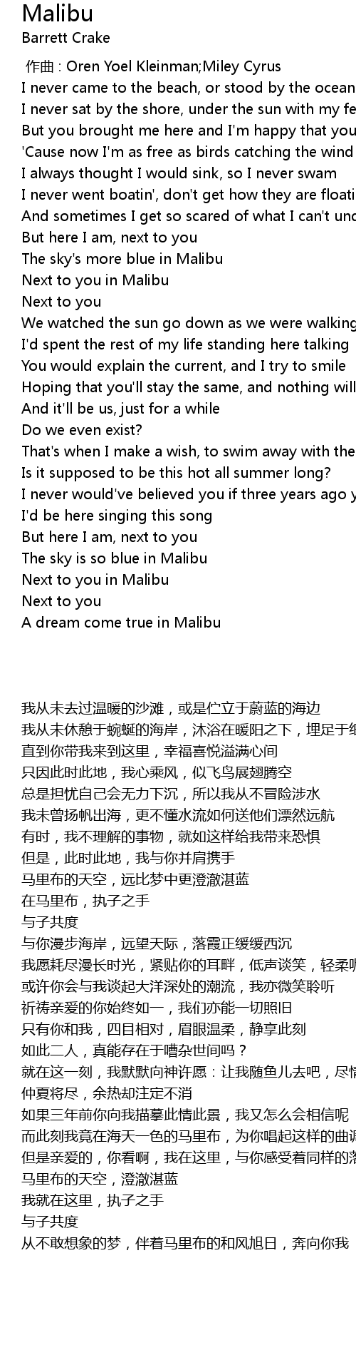 | [03:00.52] | Next to you in Malibu |