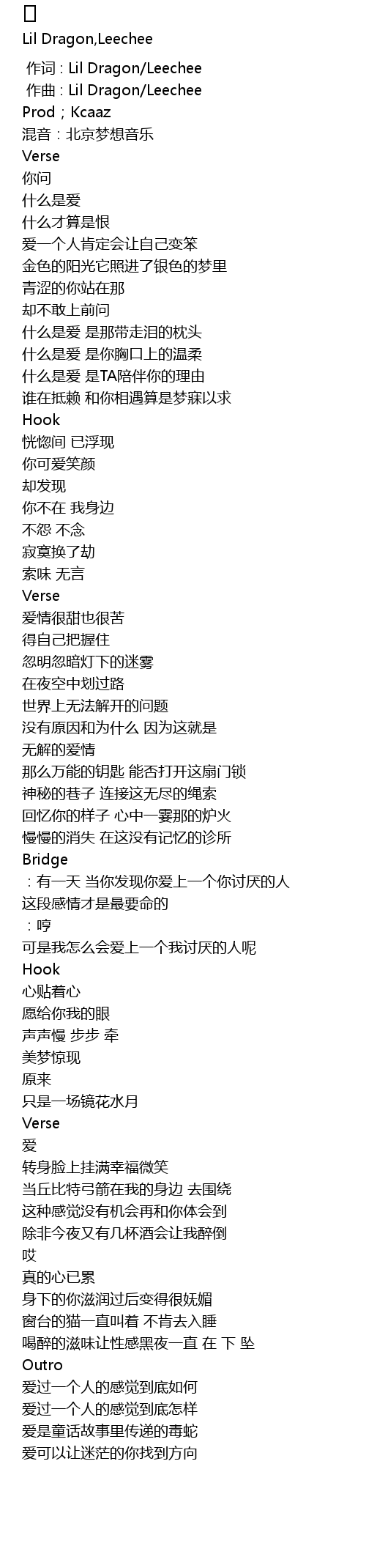 | [00:00.000] | 作词 : Lil Dragon/Leechee |