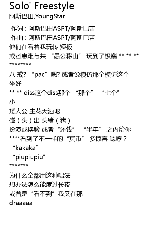 | [00:01.000] | zuo qu : a si ba tian ASPT a si ba ku |