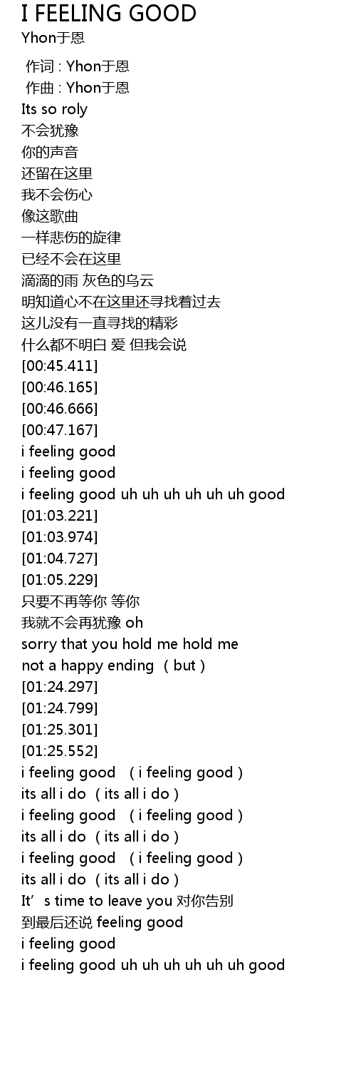 | [01:43.110] | dao zui hou hai shuo feeling good |
