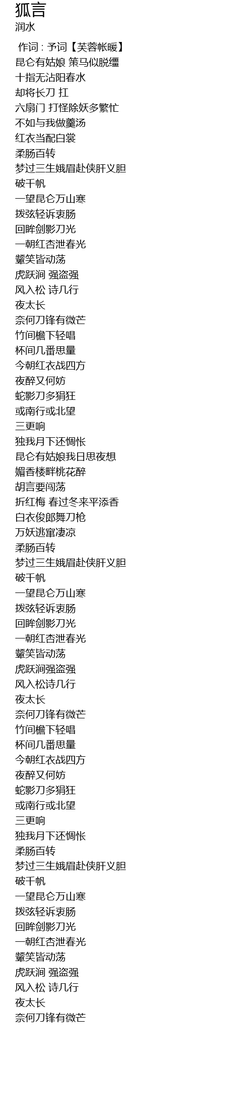 | [00:00.000] | 作词 : 予词【芙蓉帐暖】 |