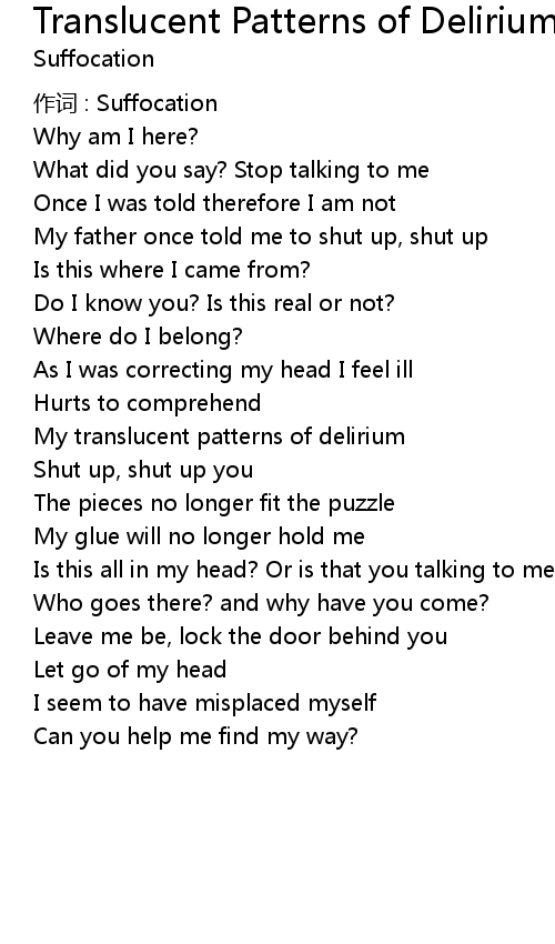 | 作词 : Suffocation | |