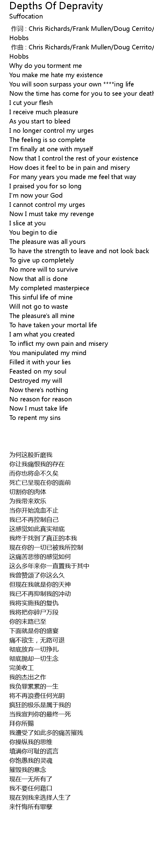 | [00:01.000] | zuò qǔ : Chris Richards Frank Mullen Doug Cerrito Doug Bohn Terrance Hobbs |