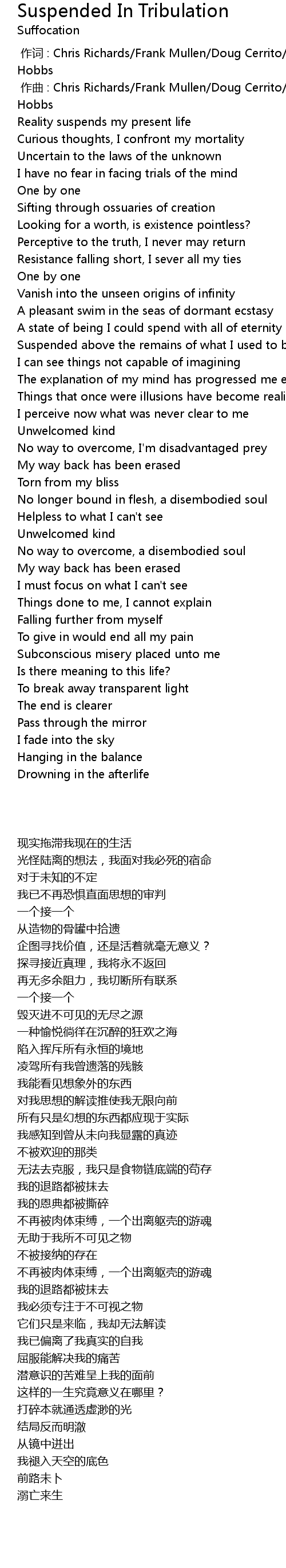 | Song | Suspended In Tribulation |