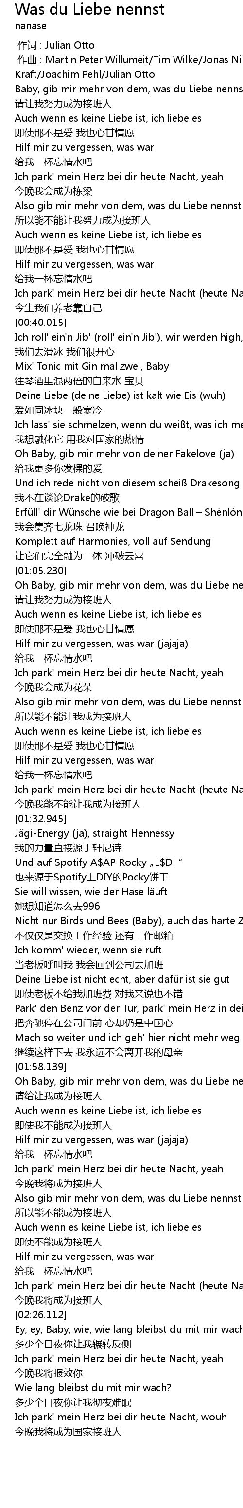 | [00:49.884] | Ich lass' sie schmelzen, wenn du wei t, was ich mein' |