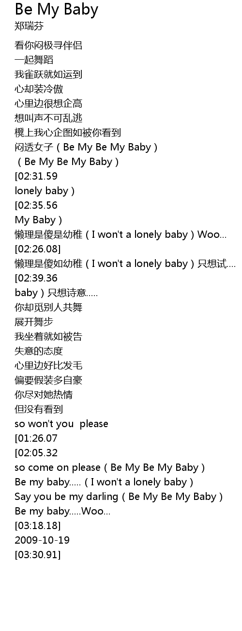 | [02:47.33] | Be my baby..... I won' t a lonely baby |
