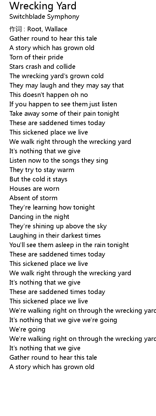 | Song | Wrecking Yard |