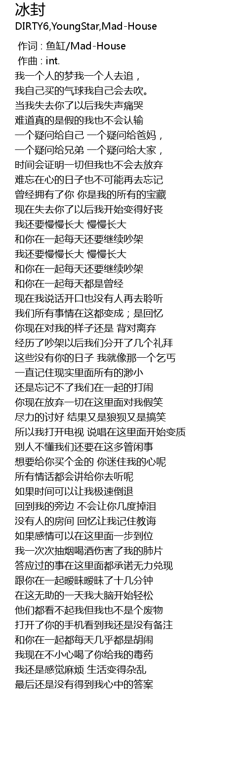 | [00:00.000] | 作词 : 鱼缸/Mad-House |