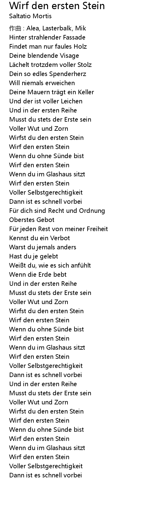 | Song | Wirf den ersten Stein |