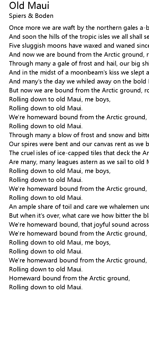 And now we are bound from the Arctic ground, rolling down to old Maui. |