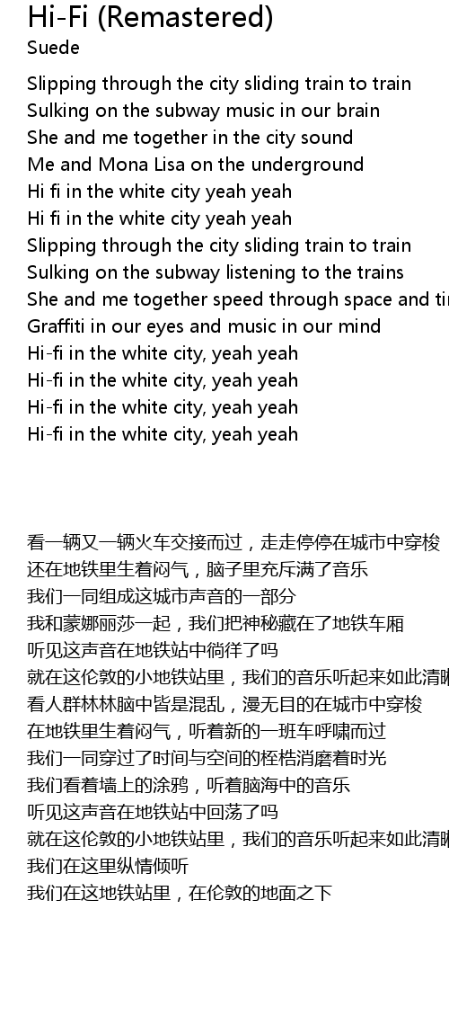 Hi-fi in the white city, yeah yeah |