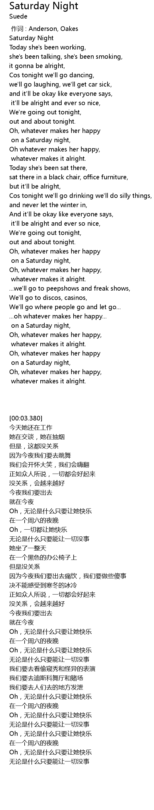 | [00:03.380] | Saturday Night |