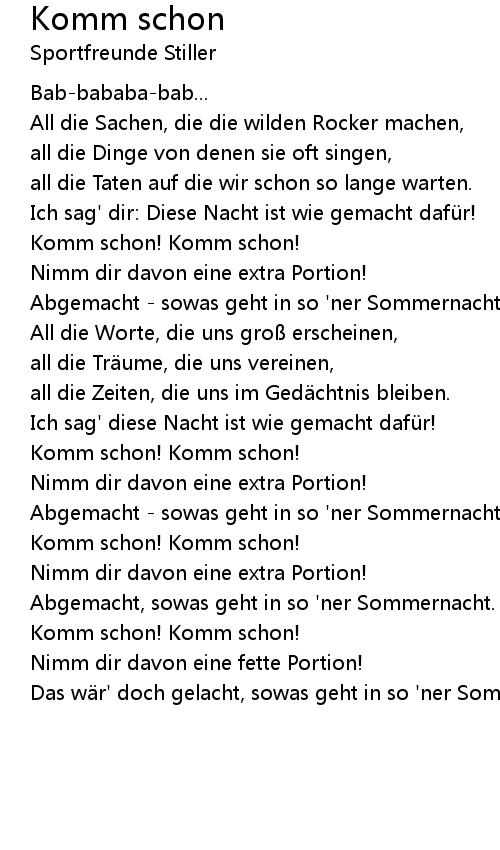 | Abgemacht sowas geht in so ' ner Sommernacht. | |