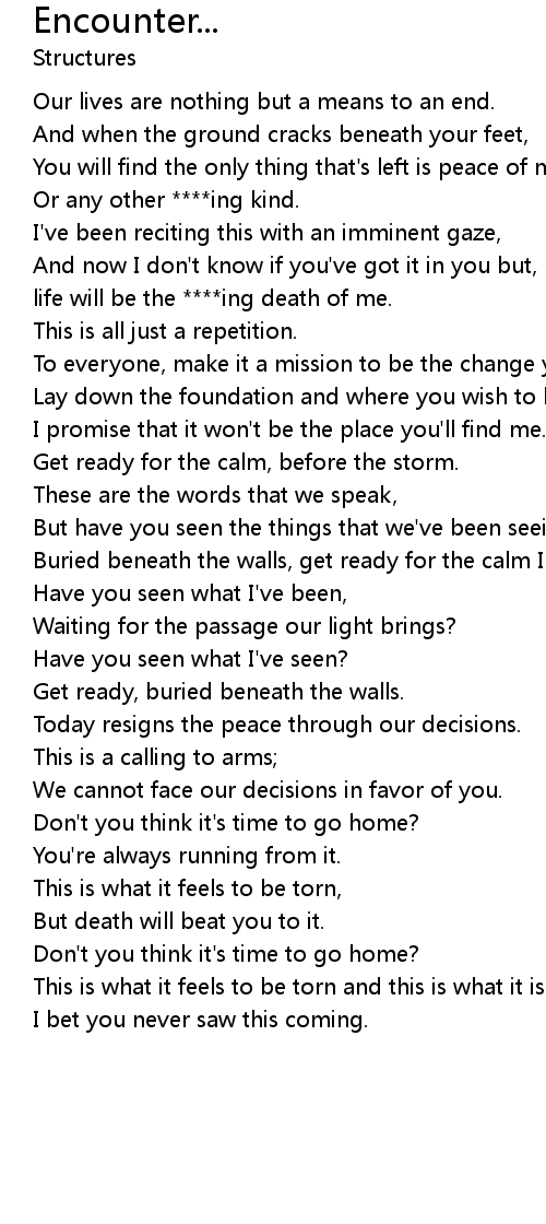 Buried beneath the walls, get ready for the calm I say. |