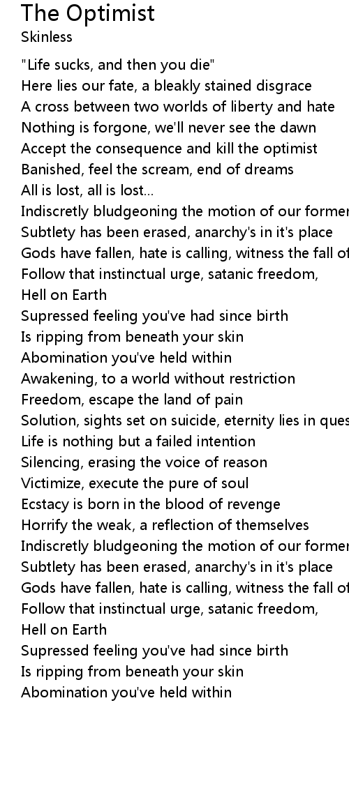 Accept the consequence and kill the optimist |