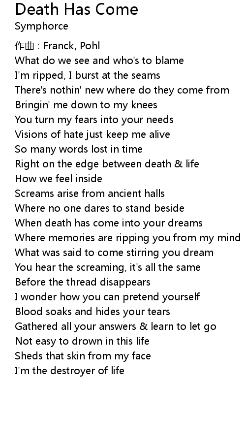 | Song | Death Has Come |