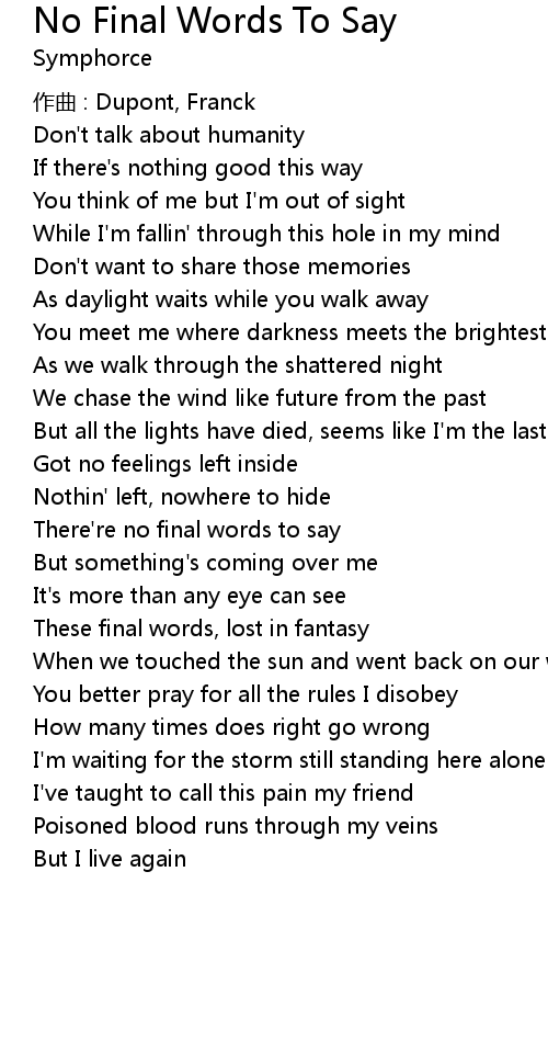 | Song | No Final Words To Say |