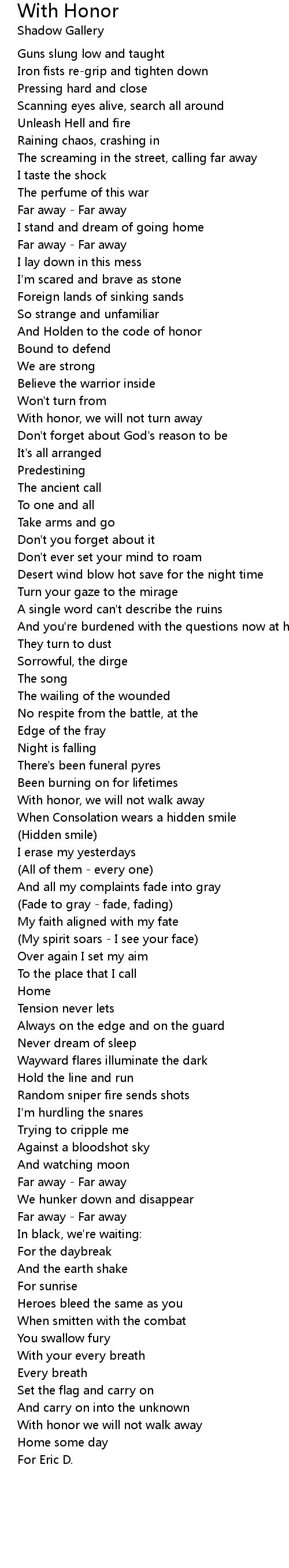 With Honor Lyrics