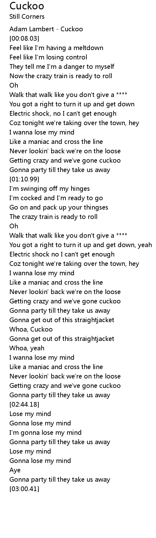 Getting crazy and we've gone cuckoo |