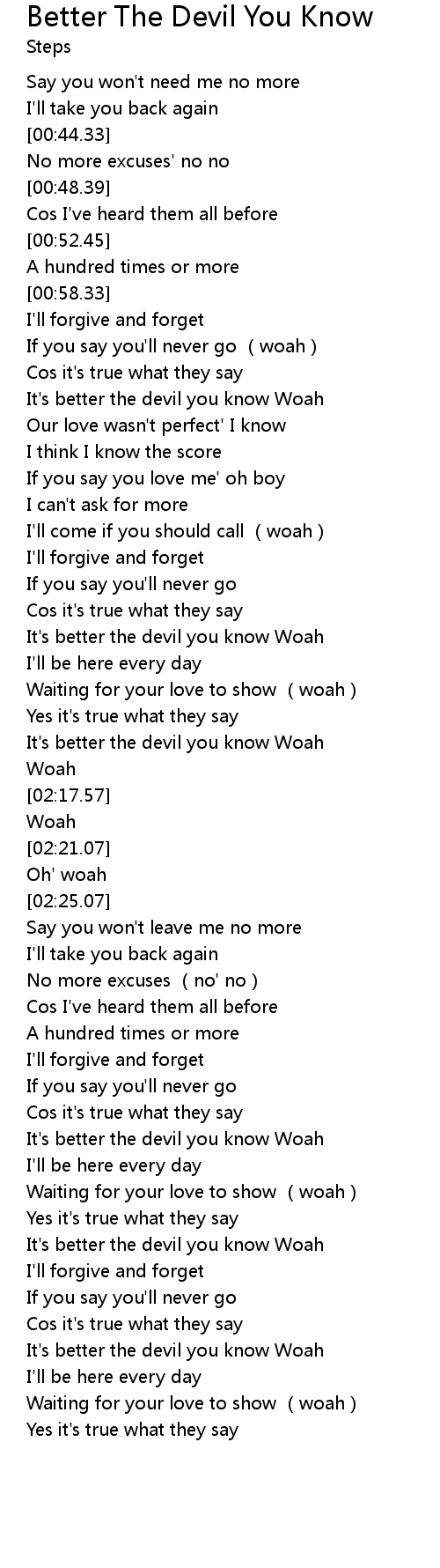| [03:17.50] | It's better the devil you know Woah |