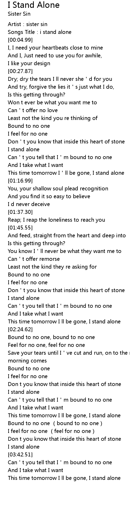 | [03:21.81] | I stand alone |