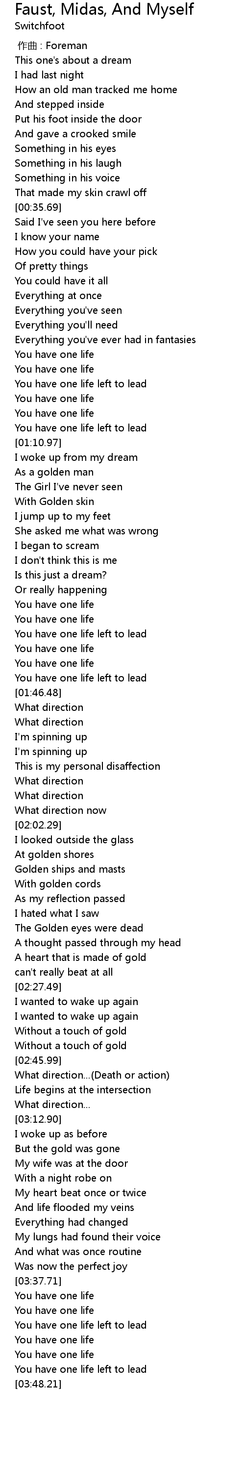 | [01:42.98] | You have one life |