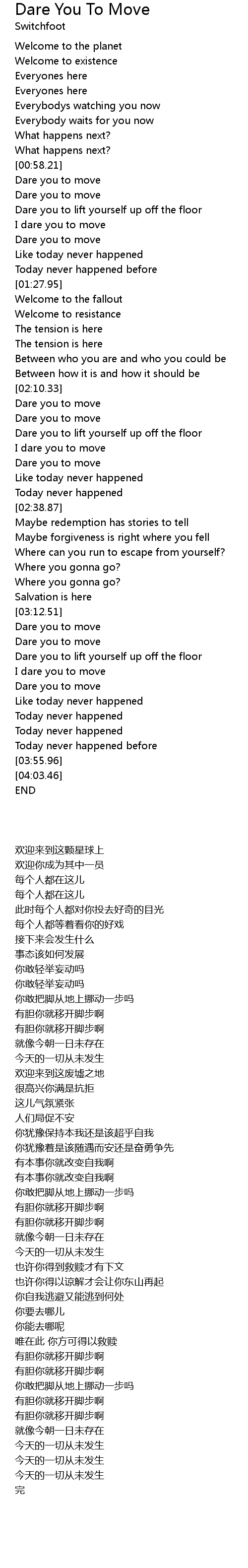 Dare you to move |
