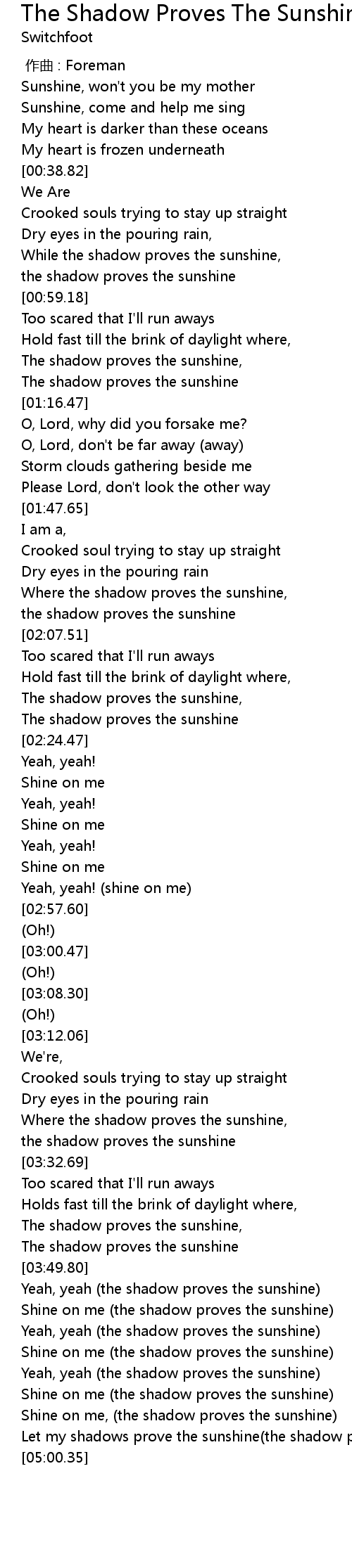 | [04:20.38] | Let my shadows prove the sunshine the shadow proves the sunshine |