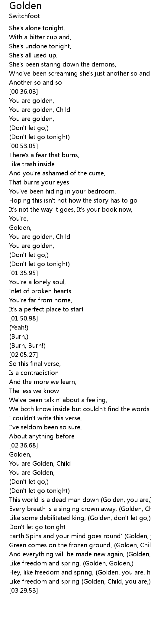 You are Golden, |