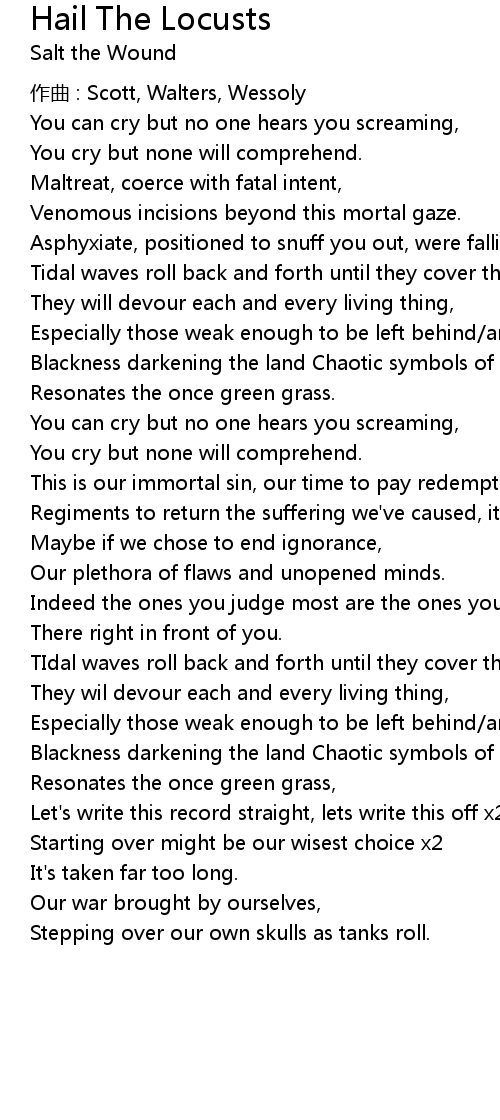 | Song | Hail The Locusts |