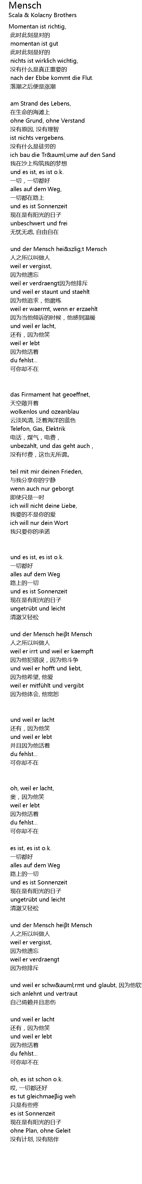 | und weil er schw auml rmt und glaubt, yīn wèi tā ruǎn ruò bìng qiě xiāng xìn | |
