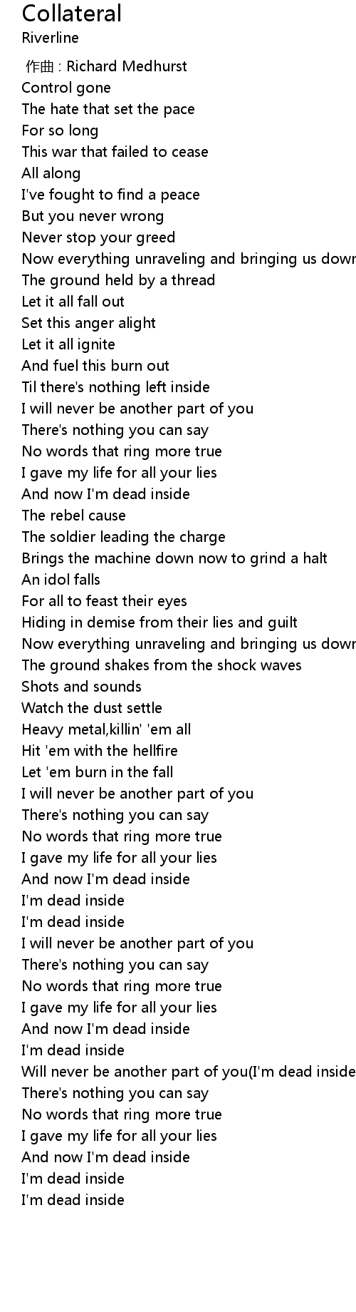 | [03:07.000] | Will never be another part of you I' m dead inside |