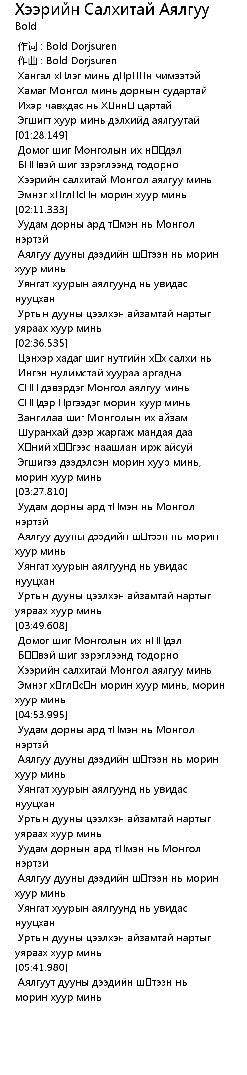 作词 : Bold Dorjsuren |