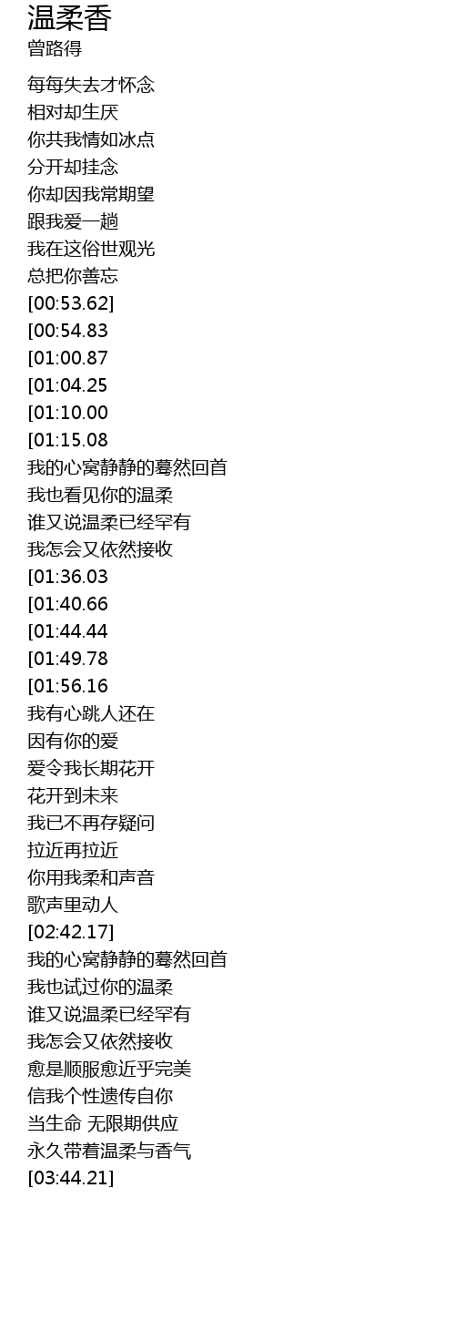 | [03:58.92][01:49.78] | 永久带着温柔与香气 |