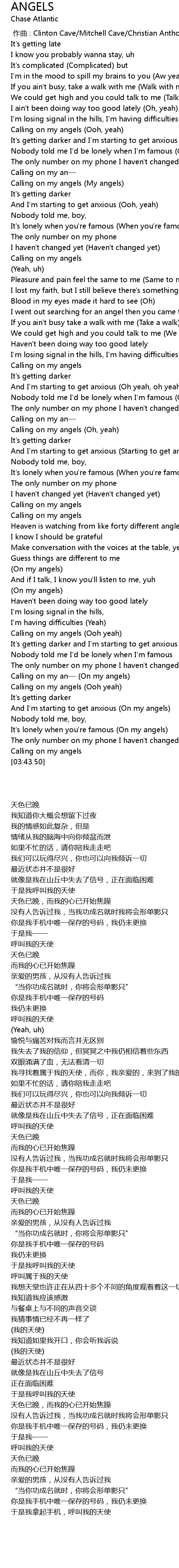 | [03:26.69] | Calling on my angels (Ooh yeah) |